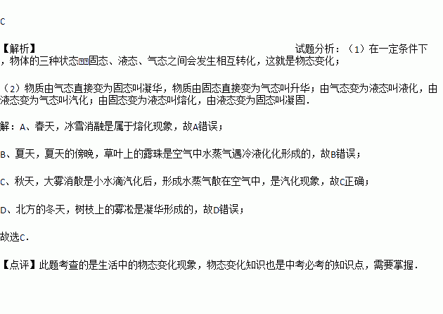 D. 北方的冬天,树枝上的雾凇是凝固形成的
