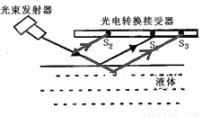试题分析:平静的水面相当于镜面,光束照射到水面发生反射,反射光会在光电转换接受器上留下光斑。当水面上升和下降时,入射点的位置会在入射光线方向上上升和下降,当反射光斑在S2、S3位置时入射点如图所示。