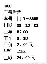放假期间,小笛乘坐出租车在平直公路上行驶,右图为他乘车到达目的地的车费发票。求: