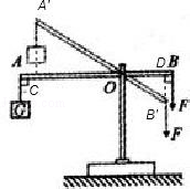 (6分)如图所示,杠杆在竖直向下拉力F的作用下将一物