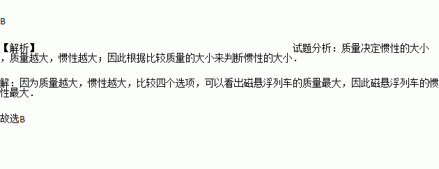 牛顿第一定律指出,惯性是物体的固有属性,一切物体都具有惯性.下图所示的四个物体中,惯性最大的是( )