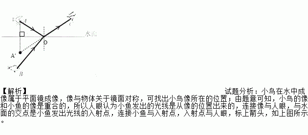 ƽ¾²Ë®ÃæÉϵÄСÄñºÍË®ÖеÄСÓ㣬ijʱ¿ÌµÄʵ¼ÊλÖÃÈçͼËùʾ£¬Ë®ÃæÒ»²àCµãµÄÈËÑÛÇ¡ºÃ¿´µ½ËüÃÇÔÚË®ÖеÄÏñÖØºÏ£¬ÒÔСÄñÑÛ¾¦Aµã´ú±íСÄñ£¬ÒÔСÓãÑÛ¾¦Bµã´ú±íСÓ㣬Ç뻳öСÄñÔÚË®ÖÐÏñµÄλÖÃÒÔ¼°ÈËÑÛ¿´µ½Ð¡ÓãµÄ¹â·ͼ£®£¨±£Áô×÷ͼºÛ¼££©