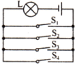 解答:开关没闭合灯就亮,显然开关与灯是并联的,且四个开关中任意一个未闭合指示灯会发光,故四个开关要串联.