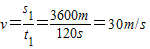 解答:解:∵s1=3600m,t1=120s