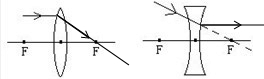 平行于主光轴的光线经凸透镜折射后将过焦点;射向焦点的光线经凹透镜折射后,将平行于主光轴.