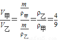 解答:解:当体积都为V=6cm3时,对应的m甲=9g,m乙=4g,