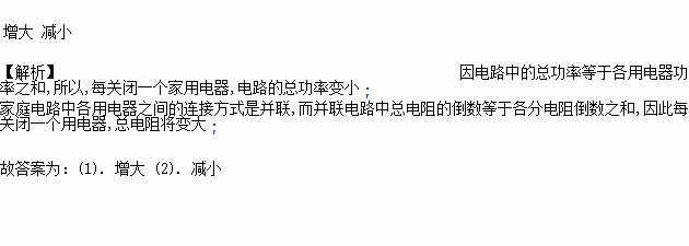“节能减排,从我做起”.芳芳同学养成了断开家中暂时可以不用的用电器的习惯.当她断开一个用电器后,家庭电路中的总电阻_____总功率_____(选填“增大”、“减小”或“不变”).
