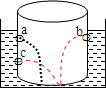 解:小孔a、b深度最相同,液体对a、b两点的压强最相同,因此水流喷射距离相同;小孔c深度较深,液体对c点的压强较大,因此水流喷射距离较远.图如下: