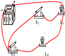 (2)开关S1控制L1,S2控制L2