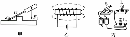 在丙图中,将实物电路补充完整,使灯L1、L2并联,且开关控制整个电路。