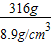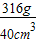 ∴m铜=ρ铜V=8.9g/cm3×40cm3=356g>316g,