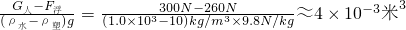 V人=0.9×2.89×10-2米3=2.6×10-2米3