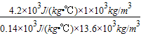 Q水:Q水银=(c水m水△t):(c水银m水银△t)=c水m水:c水银m水银=c水ρ水:c水银ρ水银=