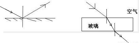 (2)过入射点作法线,当光从空气射向玻璃时,折射角小于入射角;当光从玻璃射向空气时,折射角大于入射角;光路图如图所示: