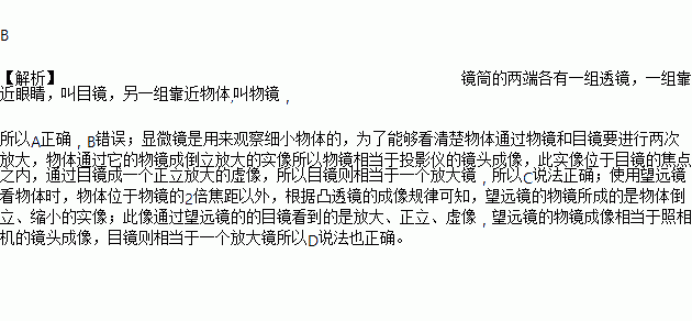 A. ¾µÍ²µÄÁ½¶Ë¸÷ÓÐÒ»×é͸¾µ£¬Ò»×é¿¿½üÑÛ¾¦£¬½ÐÄ¿¾µ£¬ÁíÒ»×é¿¿½üÎïÌå,½ÐÎï¾µ