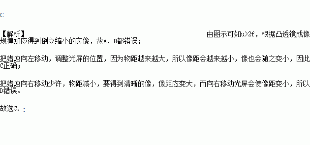 D. 把蜡烛向右移动少许,要得到清晰的像,应向左移动光屏