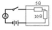 如图所示,虚线框内有两个电阻,现已知其中有一个阻值为10Ω的电阻,另一个电阻的阻值未知。小明同学想了解其连接方式,于是用3V的电源、电流表和开关进行了检测,闭合开关后,测得电流表的读数为0.2A。请在虚线框中画出这两个电阻的连接方式,并标明其阻值。