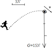 解:(1)足球重力大小是15N,设标度为5N,方向竖直向下,作用点在重心,故画重力的图示如图:
