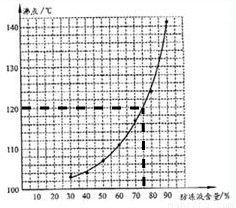 由图象可以找出当防冻液的含量达到75%时,混合液的沸点为120℃;