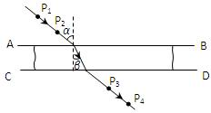 解:(1)P3、P4在同一直线上,光在同一种均匀介质中沿直线传播,因此P4挡住P3.
