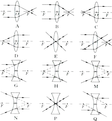 Q、入射光线的延长线过另一侧焦点,则折射光线平行凹透镜的主光轴;平行于主光轴的入射光线经凹透镜折射后折射光线反向延长通过焦点;如下图所示: