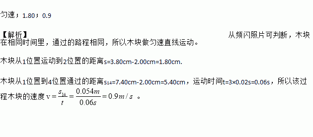 ÈçͼËùʾ£¬Ò»Ä¾¿éÔÚË®Æ½ÃæÉÏÔ˶¯Ê±ÔÚÏàµÈʱ¼äÄÚÁ¬ÐøÅÄÉã4´Î¡°ÆµÉÁ¡±ÕÕÆ¬£¬ÆµÉÁµÄʱ¼ä¼ä¸ôΪ0.02s£®´ÓƵÉÁÕÕÆ¬¿ÉÅжϣ¬¸Ãľ¿é×ö Ö±ÏßÔ˶¯£¨Ñ¡Ìî¡°ÔÈËÙ¡±»ò¡°±äËÙ¡±£©£®Ä¾¿é´Ó1λÖÃÔ˶¯µ½2λÖõľàÀëÊÇ cm£®Ä¾¿é´Ó1λÖõ½4λÖÃÔ˶¯µÄËÙ¶ÈΪ m/s£®