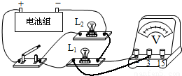 解答:解:(1)灯L1、L2并联,要测量灯泡L1两端电压,电压表需与L1并联,因为干电池组电压为3V,则选择0~3V量程.