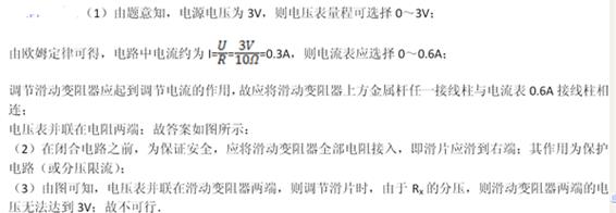 (3)老师巡回指导时,发现某一小组的实验电路图如图17(b)所示,原来他们认为Rx两端的电压可以等于电源(两节串联干电池)电压3V减去电压表的示数。在老师指导下,他们闭合开关后实测了电源两端的电压,发现其值小于3V,说明他们的方案是