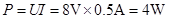 某导体两端电压为8V,通过导体的电流是0.5A,则该导体消耗的电功率是多少?