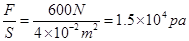 当他行走时,压力不变还等于重力即F=G=600N,但受力面积变小,