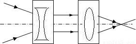 解答:解:通过第一个透镜的光线比起入射光线更加远离主光轴,所以该透镜对光线有发散作用,因此填凹透镜.