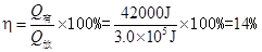 (1)每千克的酒精完全燃烧放出的热量为3.0×107焦; (2)温度计示数的变化(水升高的温度) (3)42000,14%