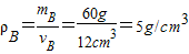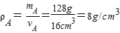由同种材料制成的A、B两个金属球,其中一个是实心的,它们的质量分别为128g和60g,体积分别为16cm3和12cm3. 实心球是 球,(选填A或B),它的密度是 g/cm3.