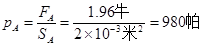 ②FA=GA=mAg=0.2千克×9.8牛/千克=1.96牛