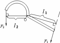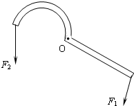 解:已知支点为O,过点O作力F1的垂线段L1,作力F2的垂线段L2,那么L1、L2即为所求作的力臂.如图所示: