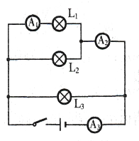解:(1)由电路图可知,三灯泡并联,电流表A1测L1支路的电流,电流表A2测L1和L2支路的电流之和,电流表A3测干路电流,等效电路图如下图所示: