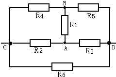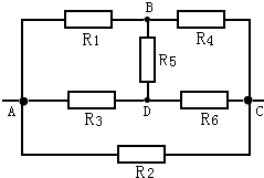 由图可知:R2、R3和R4、R5;构成电桥电路,由于它们的阻值相同,