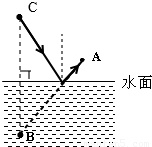 (2)根据平面镜成像特点中的物距等于像距,做出月亮的真实位置C,连接像与小猴子的眼睛与水面的交点,即为入射点,再连接C和入射点即为入射光线,A与入射点即为反射光线,如图所示: