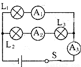 灯泡L2和L3串联,电流表A2测流过灯L2、L3的电流;灯泡L1和L2、L3并联,电流表A3测干路中的总电流;