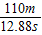 (2)刘翔110栏的最好成绩是12.88s,平均速度为v=