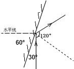 解:已知反射光线和入射光线夹角为120°,因为反射角等于入射角,所以反射角和入射角为60°;