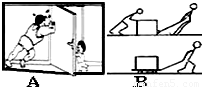 解答:A图显示大人与小孩对门的作用力的作用点不同,单作用效果相同,这说明力的作用效果,与力的作用点有关;由图B可看出,在压力相同的情况下,滚动摩擦力小于滑动摩擦力,由此可见:将滑动变滚动的方式可以减小摩擦力.