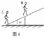如图6,长为3米的匀质平板的中点能绕固定的支点转动,平板与水平地面的夹角为30°,在板上站两个小孩。已知20千克的甲小孩位于板的中点,30千克的乙小孩位于板的左端。现两个小孩均以0.1米/秒的速度同时向右慢慢移动, s时间后平板开始转动;乙小孩在这一过程中克服自身重力做功的功率为 W。(g=10N/kg)