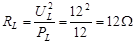 (2)IL=U/RL=12V/12Ω=1A