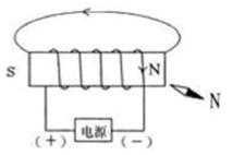 根据图8中通电螺线管的S极,标出磁感线方向、小磁针的N极,并在括号内标出电源的正、负极。