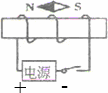 闭合开关,小磁针静止时的位置如图9所示,请你标出电源的正负极。