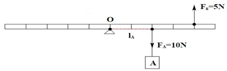 以O 为支点质量忽略不计的杠杆挂上10N 重物A,杠杆同时还受另一个大小与F A 不等、竖直向上的力F B 作用,处于平衡. 在图9 中画出(1)F A 的力臂l A ;(2)F B 的示意图并标示它的大小.![]()
