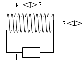 (4)根据如图中小磁针的位置(涂色部分的磁极为N极),标出甲、乙两条磁铁的N极和S极.
