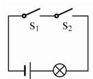 由题意知,两道门都关上,即两个开关都闭合时,等才会亮,