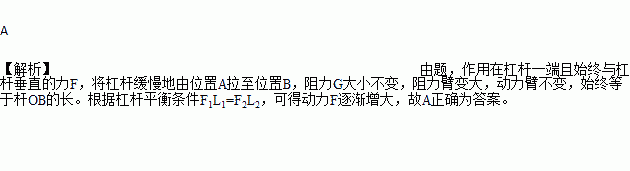 如图所示,作用在杠杆一端且始终与杠杆垂直的力F,将杠杆缓慢地由位置A拉至位置B,力F在这个过程中( )